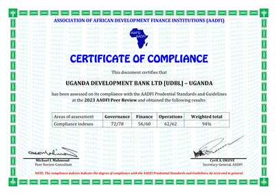 Association of African Development Financial Institutions (AADFI): UDB has consistently achieved an "A-institution" rating from AADFI, a designation reserved for top-performing Development Finance Institutions (DFIs). This rating acknowledges UDB’s outstanding performance, governance, and adherence to prudential standards, further reinforcing its role as a leader in African development finance.